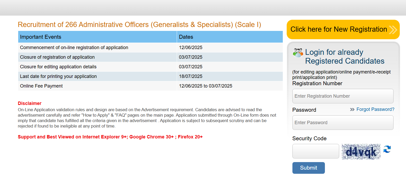 A total of 266 vacancies are announced for Generalist and Specialist posts.