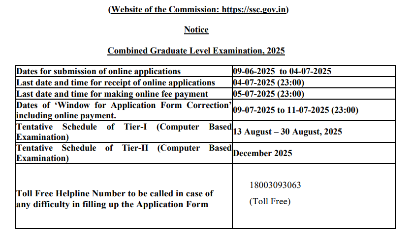 SSC CGL Notification 2025 Release Date9th June 2025