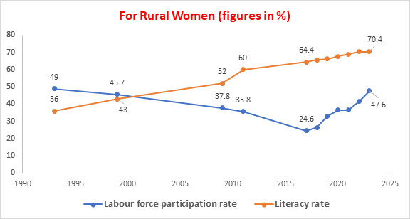 - For rural women, FLFPR was 47.6%.